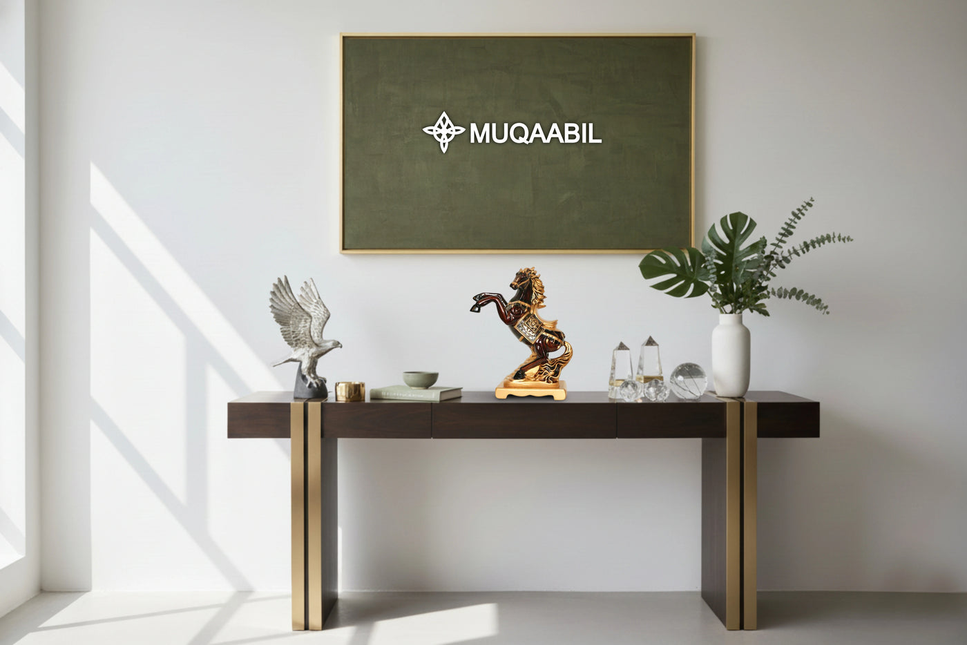 From coffee tables to console corners, MUQAABIL pieces are shaped, carved, and finished by hand — turning everyday spaces into quiet galleries of artful living.