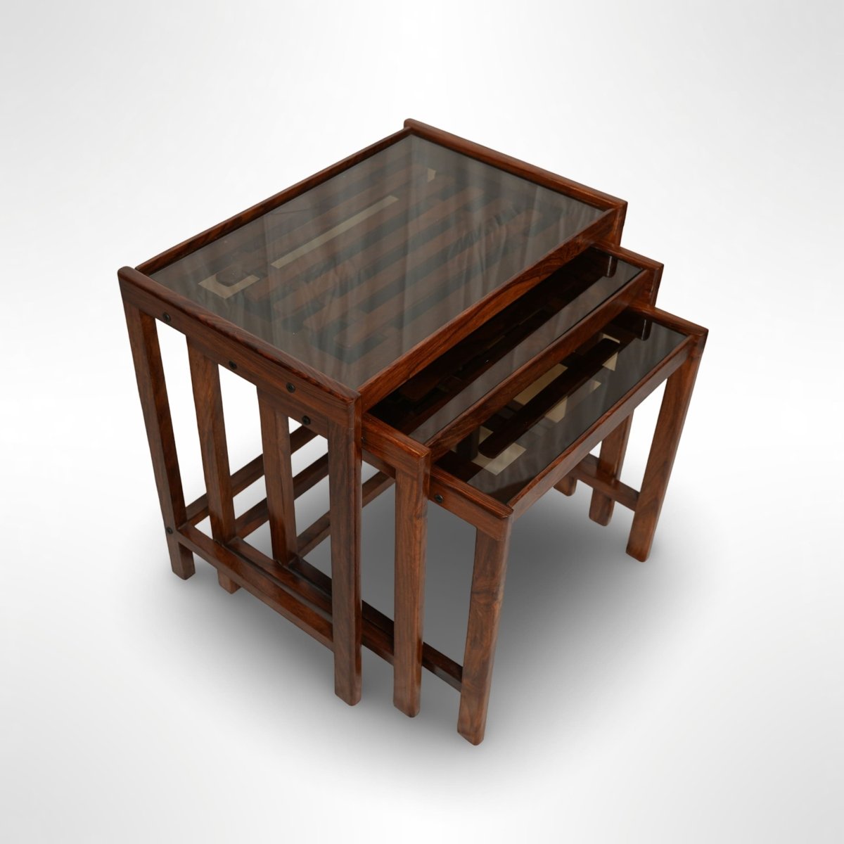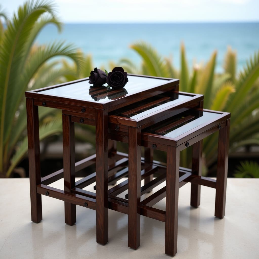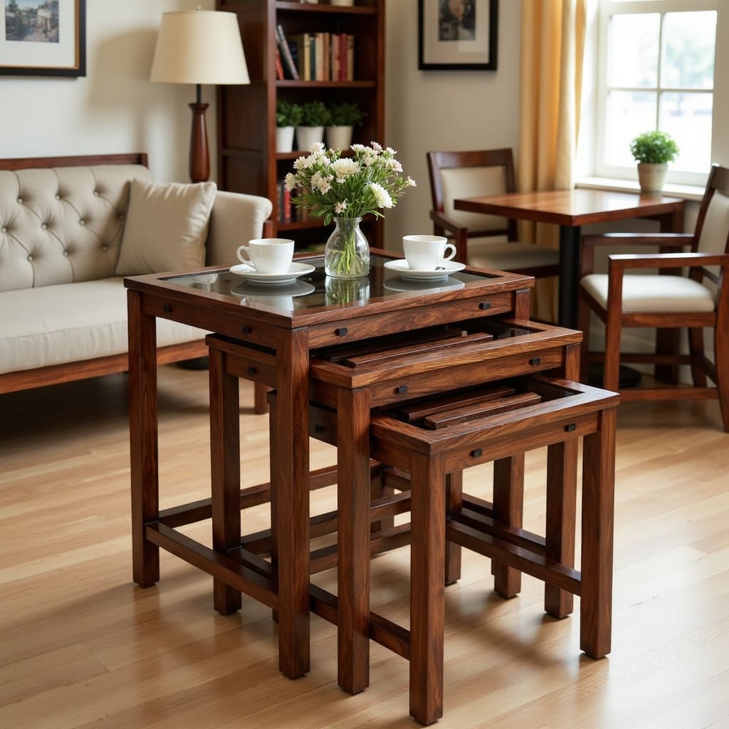 Dark Wood Nesting Tables – Set of 3 Space-Saving Stacking Tables with Glass Top